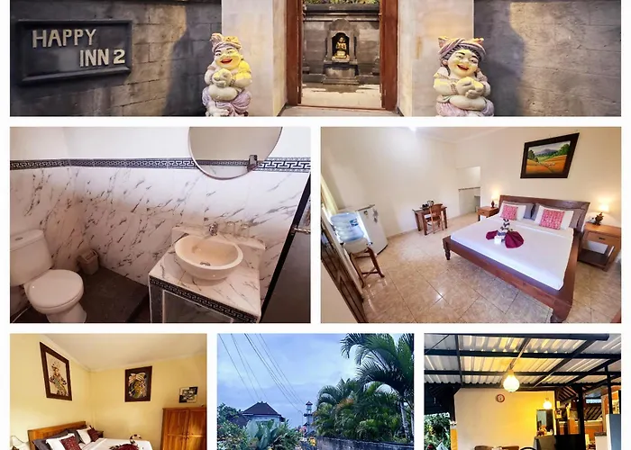 Com piscina, o Happy Inn 2 Ubud de 2 estrelas está situado no distrito Ubud City-Centre, apenas 1.6 km de do Santuário da Floresta dos Macacos Sagrados. Siatuado a 40 km do Aeroporto Internacional de Bali, este hotel de Ubud dispõe de um serviço de automóveis, bem como de bicicletas para alugar.